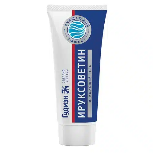 Ируксоветин гель в качестве действующих веществ содержит полиэтиленгликоль 400, полиэтиленгликоль 1500, глицерин, акрилаза (протеолитический ферментный комплекс), аллантоин, триэтаноламин, а в качестве вспомогательных веществ масло парафиновое и вазелин белый. По внешнему виду препарат представляет собой однородную сметанообразную массу белого или белого с желтоватым оттенком цвета. Выпускают Ируксоветин гель расфасованным по 50 г в пластиковых тубах, укупоренных цилиндрическим колпачком со стержнем для прокалывания мембраны тубы.